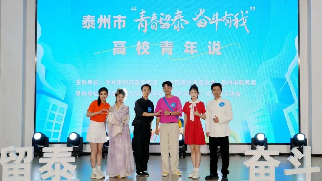 《泰州微光映初心,青年担当铸芳华》《水韵共生,谱写大美泰州》《在泰州的烟火与星光里,种下奋斗的青春》《以青春之名,赴 “产水文人” 之约》《三水文梦翩,青衿韵里旋》……来自在泰高校的青年宣讲员们声情并茂地讲述着,从“产、水、文、人”的多元发展到“微光成炬”的初心坚守,泰州既是诗意的栖居地,更是梦想的起航处,泰州青年正以“功成不必在我”的境界和“功成必定有我”的担当,共同书写“青春留泰 奋斗有我”的时代华章。